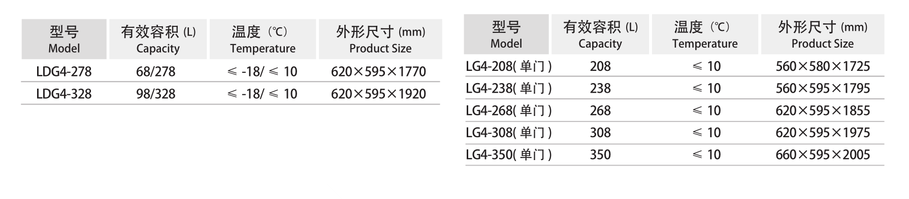 立式明管雙門單機雙溫冷凍冷藏柜系列